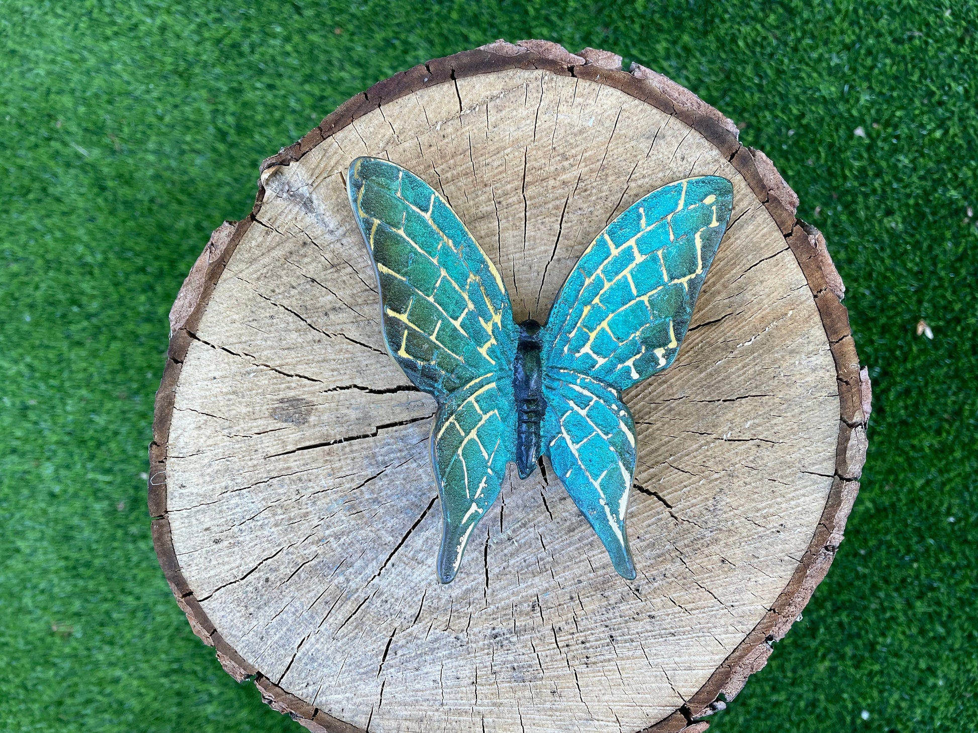 This charming bronze butterfly captures nature’s elegance in two delightful variations. With intricately designed wings and lifelike texture, each piece adds a poetic touch to garden settings, flower pots, or decorative surfaces. Available in vibrant patinated turquoise and radiant golden-yellow, this sculpture brings joy and lightness wherever it lands.